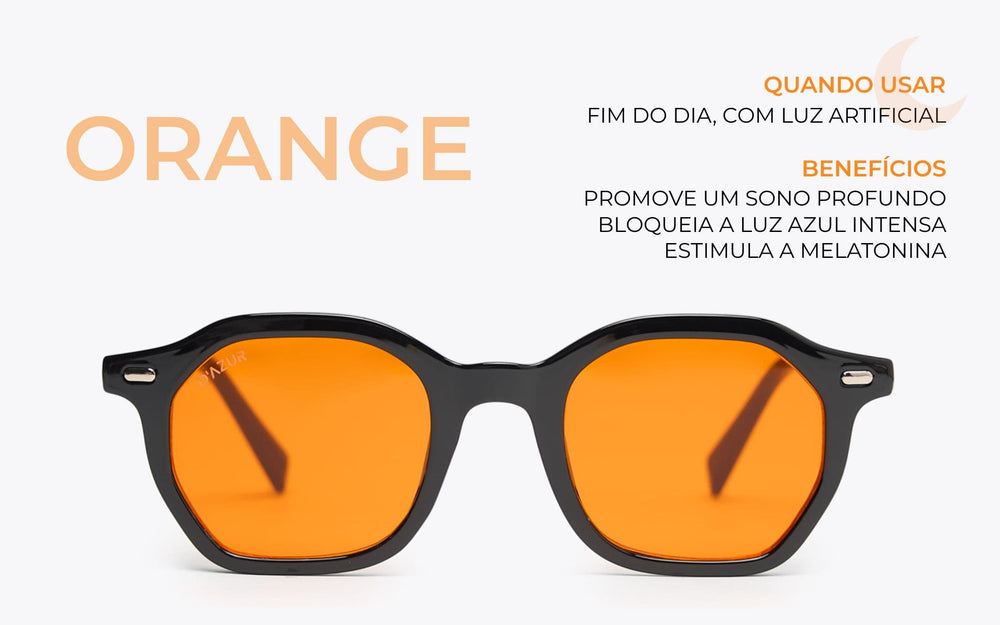 Lente ORANGE (laranja) bloqueia até 99 por cento da luz azul, perfeitas para ambiente com luz artificial e antes de dormir.