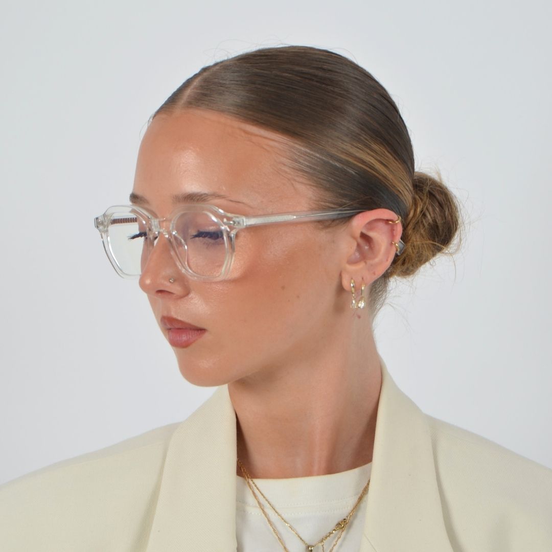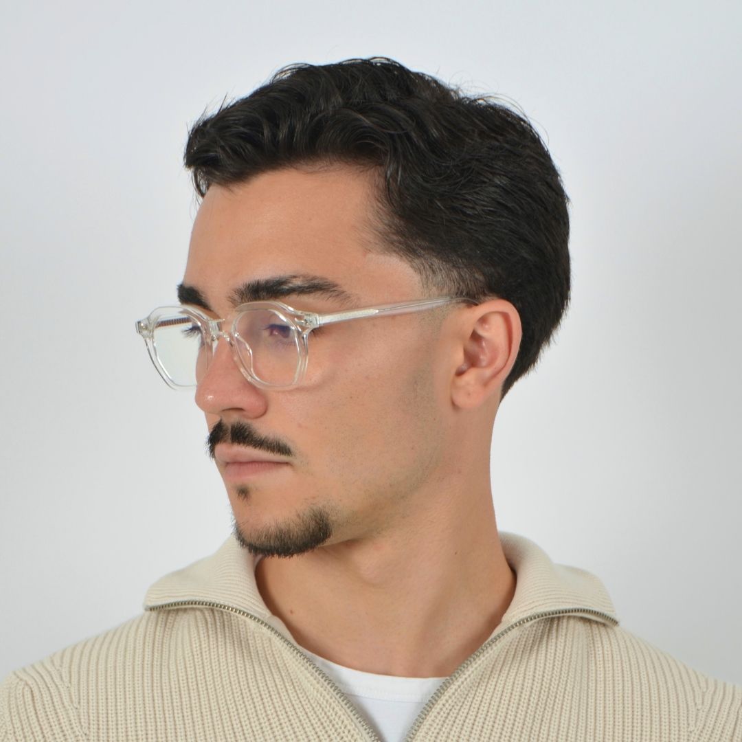 A Lente CLAIR (transparente) bloqueia luz azul de baixa intensidade, ideal para uso diurno em frente a ecrãs.